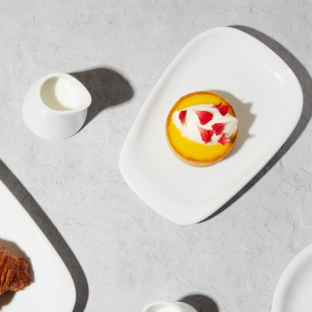 Designed to complement our Lino cups and saucers, Lino plates share the subtle ergonomic and biomorphic qualities that define the collection. The asymmetrical small pulled plate is perfectly sized serve your favorite pastry.
