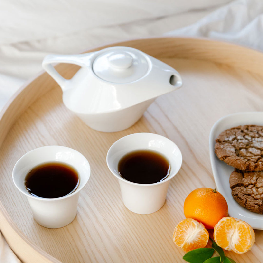 Cala tasting cups, offered in 3oz and 6oz sizes, draw inspiration from traditional gaiwan teacups. Crafted to elevate the sensory experience of sipping tea, these cups feature a broad opening to cool beverages to their optimal temperature, and to allow the aroma to float across the surface as one sips. The gently sloped lip ensures an even distribution of tea across the palate. Additionally, the Cala tasting cups serve as excellent vessels for savoring the delicate nuances of filter coffee.