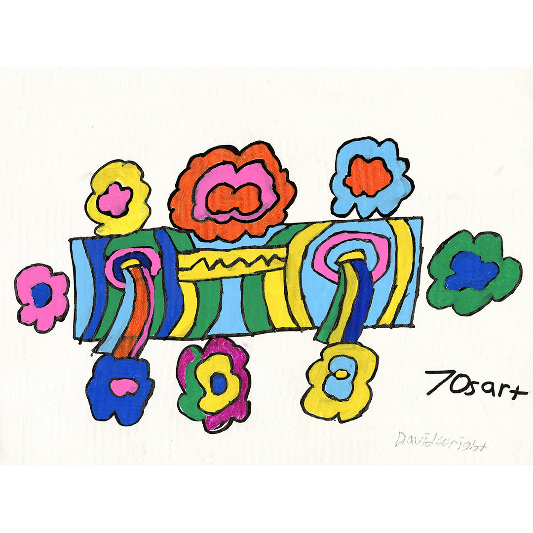 David Wright’s bold depictions of cityscapes, destination spots, and pop culture artifacts are inspired by personal travel experiences and reference images from books and the internet. Wright usually starts with a sketch then works at a large scale, using saturated color and bold, black outlines. With contacts scattered throughout the United States, Wright has plenty of material to work with and says he likes to make art when he’s “out of town.”
