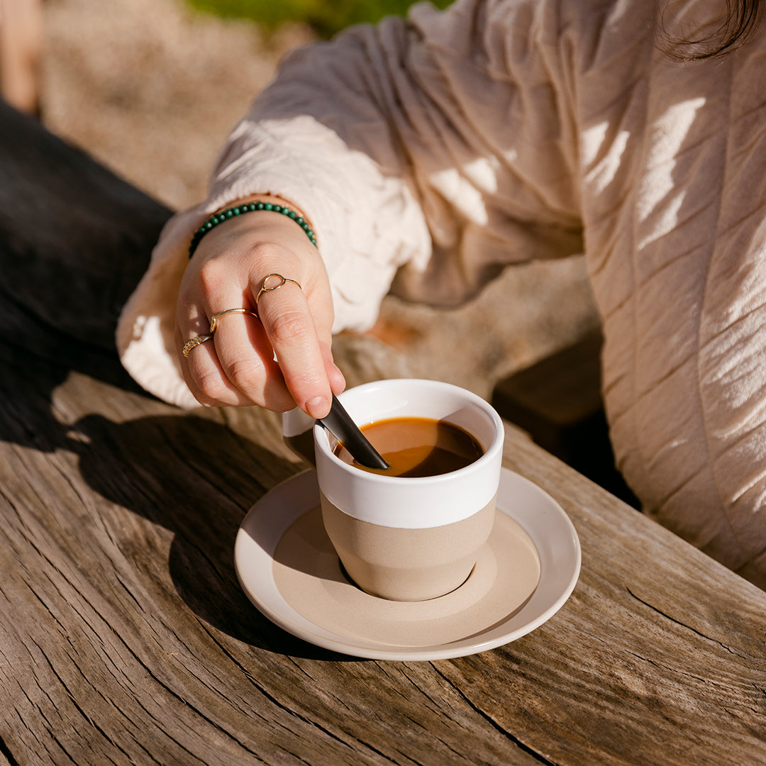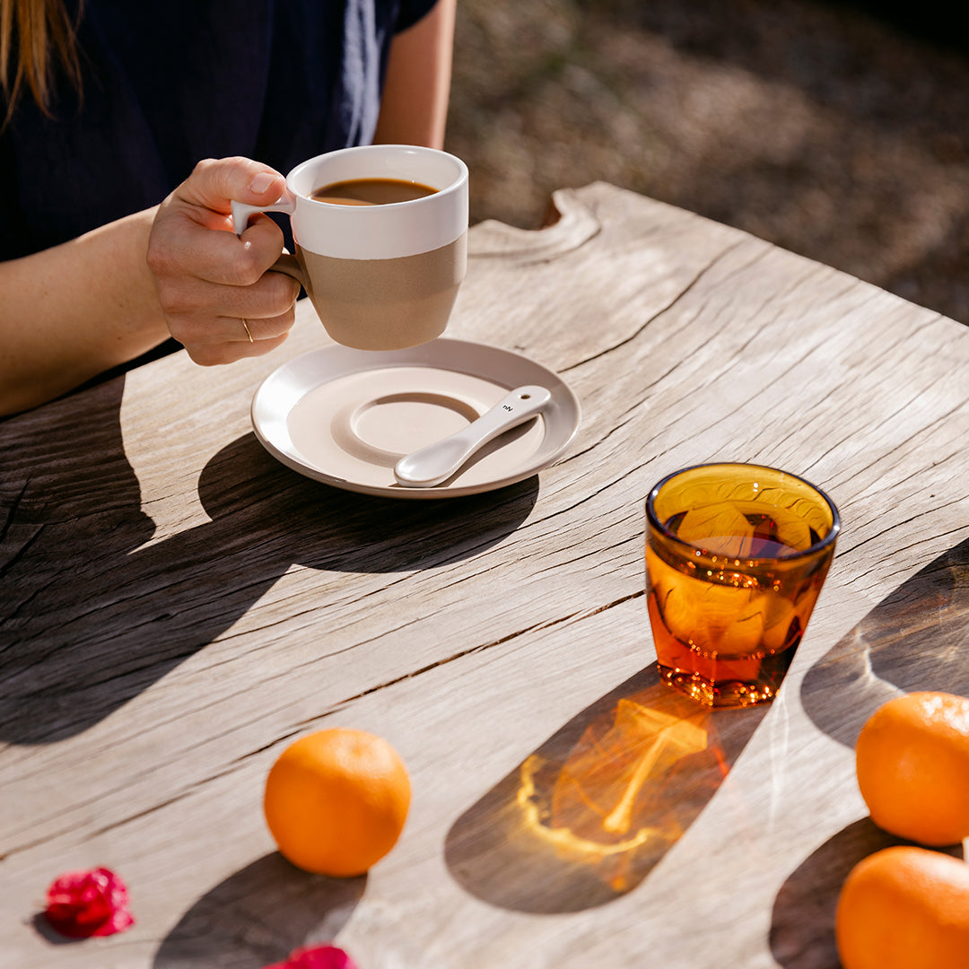 Pico is our newest line of ceramic drinkware. The collection is named after Pico Boulevard, the iconic thoroughfare that runs from the Pacific Ocean to downtown Los Angeles uniting many of the city’s most culturally diverse neighborhoods and vibrant culinary destinations. From the glazed lip for the perfect sip and the tulip shape to keep beverage temperatures stable, to the oft-forgotten spoon that nestles perfectly in the saucer and rests intuitively in hand, every detail in the collection was meticulously designed to make Pico a treasured part of your coffee or tea ritual.